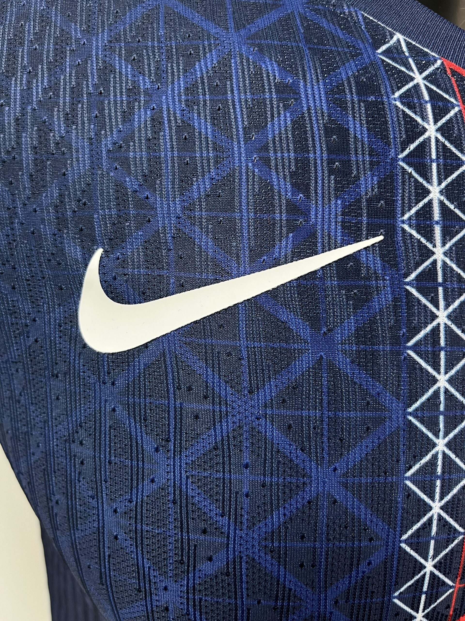 The PSG Player Version Long Sleeve Jersey 2025-26 features laser-cut perforations strategically placed in high-heat zones for enhanced ventilation and thermoregulation. These precision-engineered perforations on the PSG Player Version Long Sleeve Jersey 2025-26 allow hot air to escape and cool air to enter, maintaining optimal body temperature throughout intense physical activity. The advanced ventilation system of the PSG Player Version Long Sleeve Jersey 2025-26 is engineered for athletes who demand peak performance in every condition.