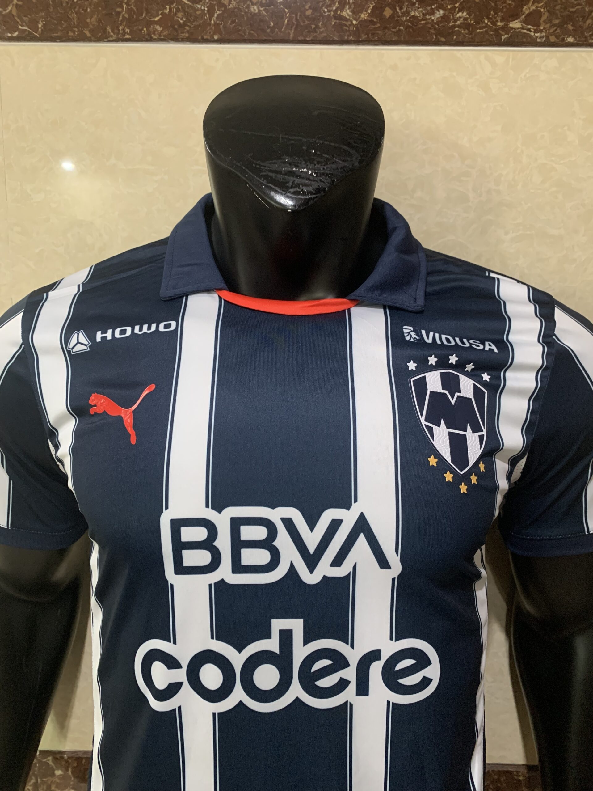 The official CF Monterrey crest — featuring the iconic letter M and the blue and white stripes that have represented the club since its founding in 1945 — is displayed with enormous pride, total reverence and absolutely immaculate precision directly on the chest of the Monterrey Home Jersey 2024-25 Puma. Every single iconic and historically significant detail of the legendary Rayados badge has been rendered in absolutely perfect clarity and vivid colour — representing over 75 years of Monterrey football history, five Liga MX championships, three CONCACAF Champions League titles, and a tradition of producing the most passionate, the most loyal and the most universally admired footballers in the entire history of Mexican football. The crest on the Monterrey Home Jersey 2024-25 Puma proudly displays the club’s championship stars, representing their domestic and continental triumphs [citation:7]. Wearing this crest on the Monterrey Home Jersey 2024-25 Puma means wearing the mark of the 1986 champions, the mark of the five-time Liga MX winners, and the mark of the most passionately supported football club in northern Mexico.