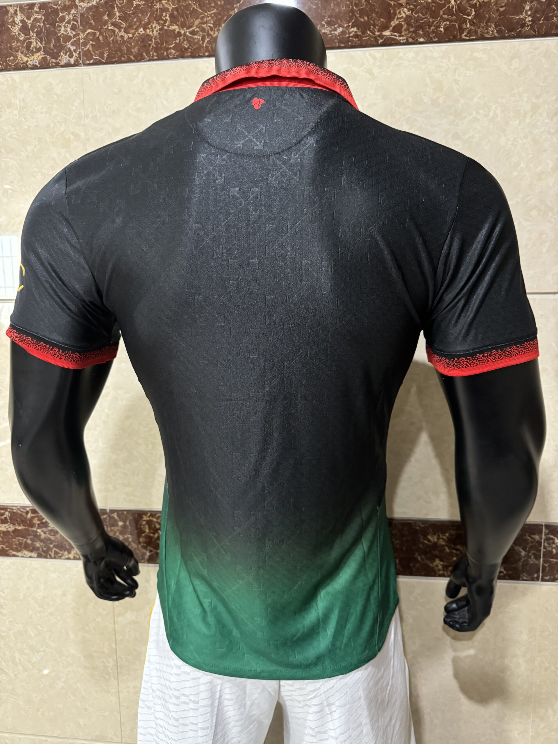 The single most extraordinary and most visually captivating feature of the AC Milan Off-White T-Shirt 2024-25 Puma is the breathtaking all-over Off-White™ arrow pattern that spans across the entire t-shirt — a powerful, bold and deeply artistic design that pays direct and beautiful homage to the signature aesthetic of legendary fashion house Off-White™. The Off-White™ arrows appear as a tonal pattern throughout the AC Milan Off-White T-Shirt 2024-25 Puma, creating a texture that is unmistakably Off-White™ and instantly recognisable to fashion connoisseurs worldwide . The t-shirt features the word “DIAVOLI” (Italian for “devils”) prominently displayed, with Off-White™’s signature speech marks — a direct nod to Herbert Kilpin’s founding declaration that AC Milan would be “a team of devils” . The AC Milan club crest appears in tonal black, and the “Emirates Fly Better” sponsor logo sits prominently on the chest. The Off-White™ signature zip tie hangs from the bottom of the AC Milan Off-White T-Shirt 2024-25 Puma, completing the authentic Off-White™ aesthetic . Every time you wear the AC Milan Off-White T-Shirt 2024-25 Puma, you carry the artistic vision of Off-White™ and the devilish spirit of the Rossoneri with you — bold, powerful and utterly unique.