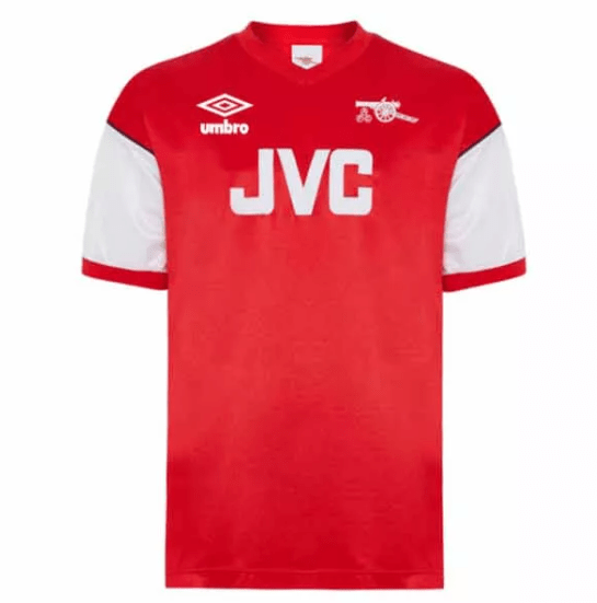 The Retro Arsenal Home Shirt 1982–84 is a tribute to an era of classic football and Highbury nostalgia. This iconic red shirt features the traditional white sleeves, a sharp white V-neck collar, and the embroidered Arsenal cannon crest, with the memorable JVC sponsor across the front — one of the earliest uses of shirt sponsorship in English football.